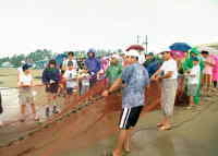 みんなで地引き網をした後、大量鍋で取れたてのキトキトの魚をいただきました。