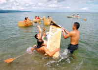 みんなで地引き網をした後、大量鍋で取れたてのキトキトの魚をいただきました。
