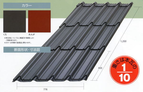 日本瓦の1/10の軽量で一体成型のため地震などで、落下や割れなど発生しません。したがって家に負担をかけることなく抜群の耐震性を発揮する屋根材です。 |