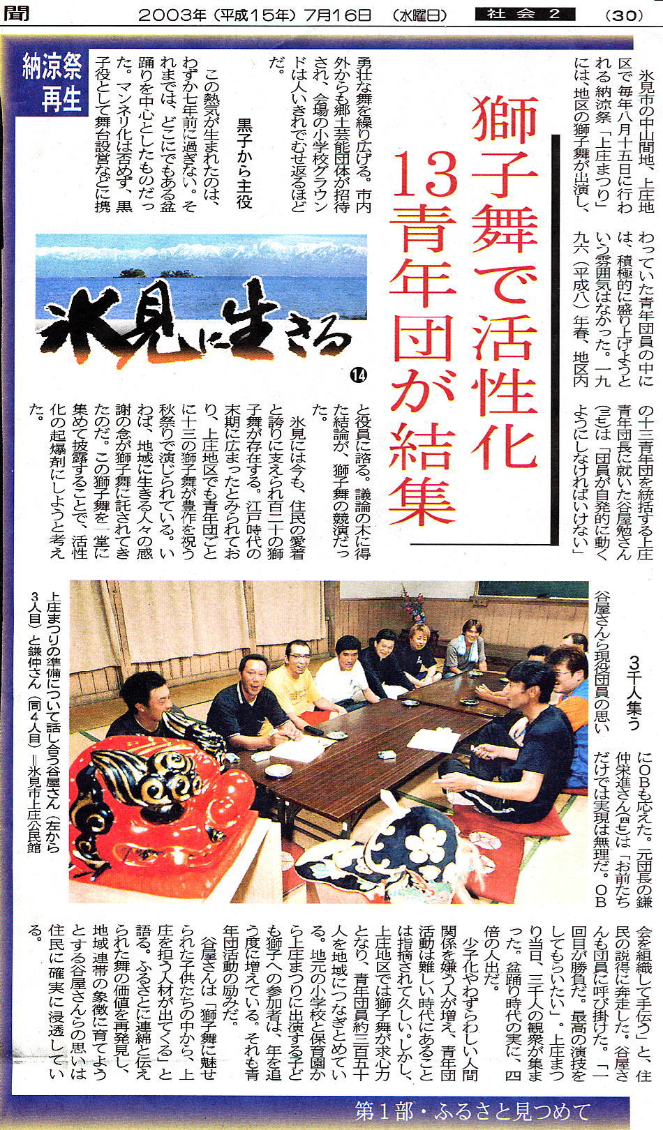 2003年7月16日に富山新聞に掲載されました。