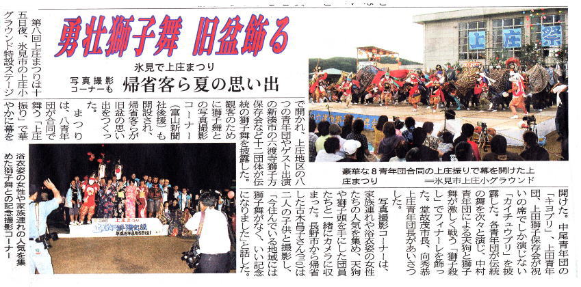 上庄まつりについての記事
