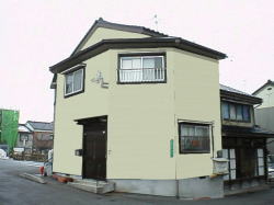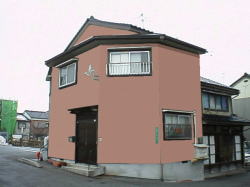 @外壁にはプリント鋼板が張ってあり、色の落ちやサビが目立っていた。
